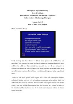 And let us see that under this chapter that is iron carbon phase diagram. We will look at that allotropic transformation iron exists in several crystalline forms, and ...