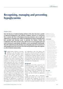Recognising, managing and preventing hypoglycaemia 256 Journal of Diabetes Nursing Volume 17 No 7 2013 of life, such as loss of their driving licence or