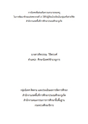 การนิเทศเพื่อส่งเสริมความสามารถของครูในการพัฒนาทักษะแห่งศตวรรษที่ 21 ให้กับผู้เรียนโรงเรียนกลุ่มเครือข่ายวิชิต สำนักงานเขตพื้นที่การศึกษาประถมศึกษาภูเก็