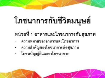 หน่วยที่ 1 โภชนาการกับชีวิตมนุษย์