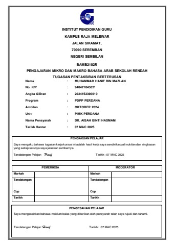 TUGASAN PENTAKSIRAN BERTERUSAN- MUHAMMAD HANIF BIN MAZLAN