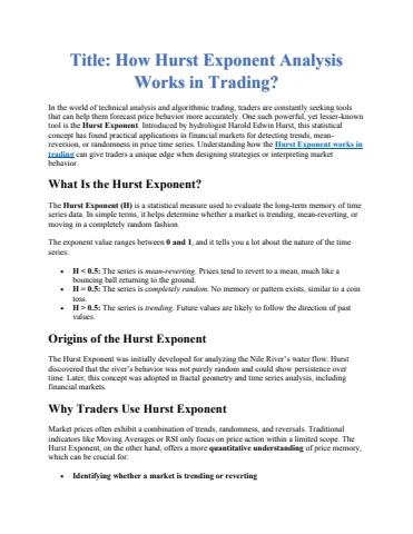 Have you ever heard of Hurst Exponent Analysis? It is a powerful statistical and mathematical tool used in diverse fields. Due to its effectiveness, the concepts are even used for predicting the financial market.