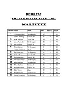 Placering Namn klubb Träff Figurer Poäng 1 Anders Dahlberg Edsvalla skf 35 17 29 2 Thomas Carlsson Töreboda psk 35 17 26 3 Hasse Nordström Edsvalla skf 33 15 20