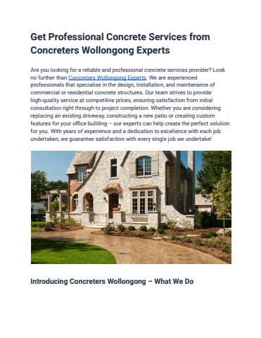 Are you looking for a reliable and professional concrete services provider? Look no further than Concreters Wollongong Experts. We are experienced professionals that specialise in the design, installation, and maintenance of commercial or residential concrete structures.