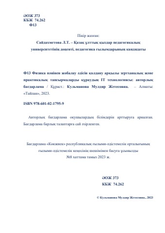 Физика пәнінен жобалау әдісін қолдану арқылы зертханалық және практикалық тапсырмаларды құраудың IT технологиясы