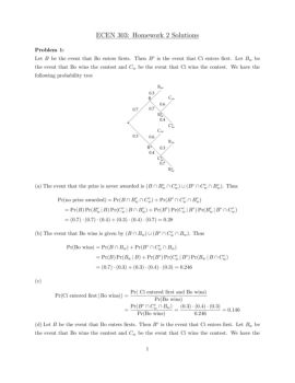 ECEN 303: Homework 2 Solutions Problem 1: Let B be the event that Bo enters rsts. Then Bc is the event that Ci enters rst. Let B w be the event that Bo wins the ...