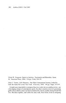 204 Aethlon XXIII:I / Fall 2005 the old master, Jenson meets the owner's son, an uneven golfing talent, who comes to distill from his friendship with Jenson the ...