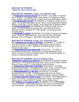 BEDLINGTON TERRIERS JUDGE: Ms. Sharol Candace Way BEDLINGTON TERRIERS. Puppy, 6 to 9 Months Dogs. 1 57CHELSEA'S CHICAGO BLUES. RN 07297001. 02-15-05By Ch Chelsea's