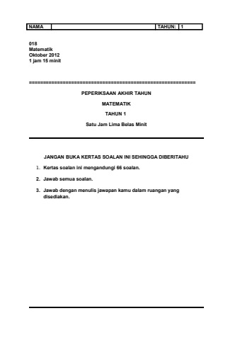 MATEMATIK AKHIR TAHUN 1