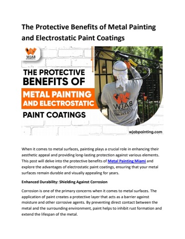 When it comes to metal surfaces, painting plays a crucial role in enhancing their aesthetic appeal and providing long-lasting protection against various elements. This post will delve into the protective benefits of Metal Painting Miami and explore the advantages of electrostatic paint coatings, ensuring that your metal surfaces remain durable and visually appealing for years.