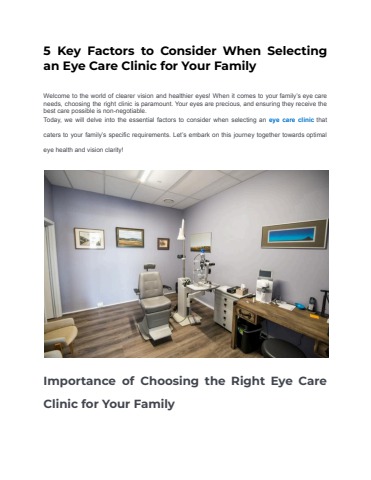 Today, we will delve into the essential factors to consider when selecting an eye care clinic that caters to your family’s specific requirements. Let’s embark on this journey together towards optimal eye health and vision clarity!