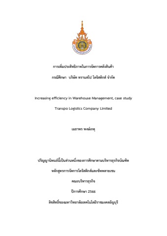 การเพิ่มประสิทธิภาพในการจัดการคลังสินค้า กรณีศึกษา บริษัททรานสโป โลจิสติกส์ จำกัด