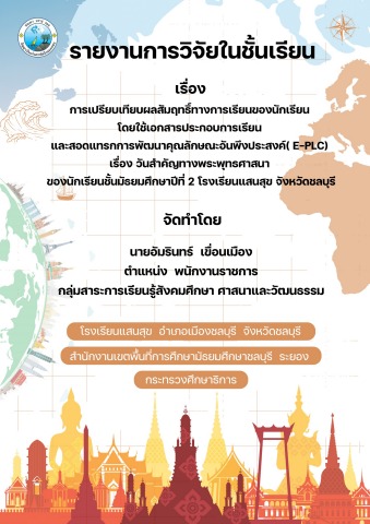 วิจัยในชั้นเรียน เรื่อง การเปรียบเทียบผลสัมฤทธิ์ทางการเรียนของนักเรียน โดยใช้เอกสารประกอบการเรียน และสอดแทรกการพัฒนาคุณลักษณะอันพึงประสงค์( E-PLC) เรื่อง วันสำคัญทางพระพุทธศาสนา ของนักเรียนชั้นมัธยมศึกษาปีที่ 2 โรงเรียนแสนสุข จังหวัดชลบุรี