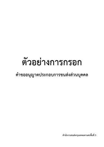 ตัวอย่างการกรอกแบบฟอร์มประกอบการขนส่งส่วนบุคคล สำนักงานขนส่งกรุงเทพมหานครพื้นที่ 5
