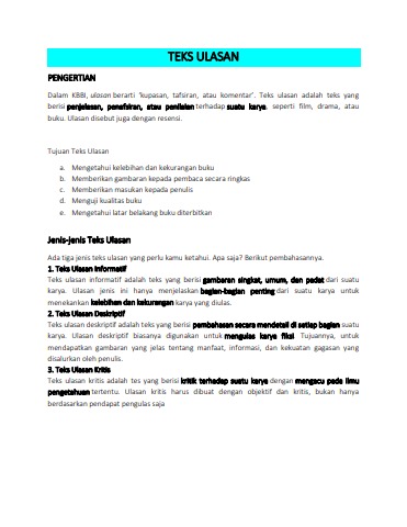 Pengertian, tujuan, jenis-jenis, struktur teks, dan kaidah kebahasaan teks ulasan
