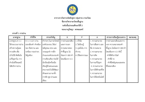 ตารางวิเคราะห์หลักสูตรวิชาภาษาไทย