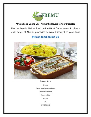 Shop authentic African food online UK at fremu.co.uk. Explore a wide range of African groceries delivered straight to your door.