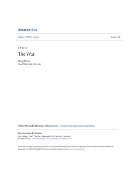 Amaranthus Volume 1980|Issue 1 Article 42 2-6-2013 The War Margi Derks Grand Valley State University Follow this and additional works at:http://scholarworks.gvsu.edu ...