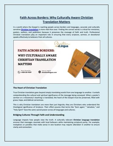Christian Lingua is a Christian translation ministry serving the Great Commission. We partner with churches, Bible publishers, and mission groups to translate Christian literature, digital media, and educational resources into over 220 languages. Every project is bathed in prayer and rooted in the vision of making the Gospel accessible to all nations. Ministries like Bible Project and Revelation Media trust us to deliver faith-filled translations that glorify God and serve His Kingdom.