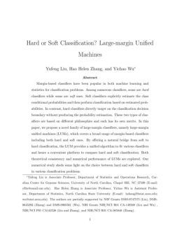 Hard or Soft Classiflcation? Large-margin Unifled Machines Yufeng Liu, Hao Helen Zhang, and Yichao Wu⁄ Abstract Margin-based classiflers have been popular in ...