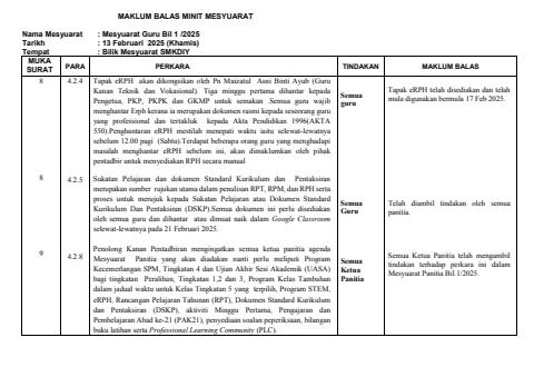 MAKLUMBALAS MINIT MESYUARAT 1 TERBARU