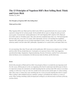 Think and Grow Rich http://amzn.to/2eDPQSv When Napoleon Hill wrote Think and Grow Rich! in the 1930′s he expected the book to be a success and he expected to change the lives of many people, but he probably did not expect to change the entire personal success genre. From the book’s initial publication in 1937 until Napoleon Hill’s death in 1970, Think and Grow Rich! sold over 20 million copies. Since then sales have multiplied many times over. The book frequently hits best-seller lists, even in the 21st century. More importantly, however: the teachings have multiplied. Napoleon Hill’s philosophy can now be found repackaged in books, e-books, audio, video, and blogs, by the numerous authors who have taken Hill’s philosophy, expanded on it or scaled it down, and made it their own.