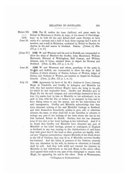 RELATING TO SCOTLAND. 201 HENRY III. _-~—-1230. June 26. 1101. The K. ratifies the lease (ballium) and grant made by Robert de Muschans to Boidin de Argu, of his ...