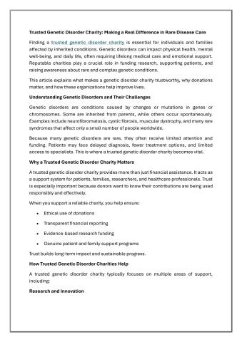 Finding a trusted genetic disorder charity is essential for individuals and families affected by inherited conditions. Genetic disorders can impact physical health, mental well-being, and daily life, often requiring lifelong medical care and emotional support.