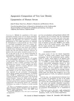 Third, to determine the extent to which soluble apopro-teins might become immured in the apoB-lipid precipitate, samples of VLDL, with protein contents varying from 1 ...