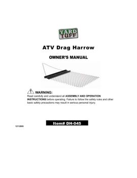 ATV Drag Harrow OWNER’S MANUAL WARNING: Read carefully and understand all ASSEMBLY AND OPERATION INSTRUCTIONS before operating. Failure to follow the safety rules ...