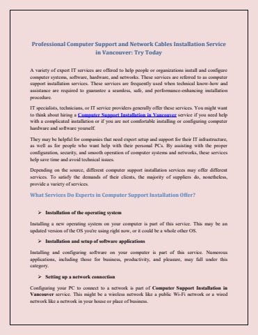 Get professional computer support and network cables installation service in Vancouver. Try our reliable services today and experience hassle-free IT solutions.