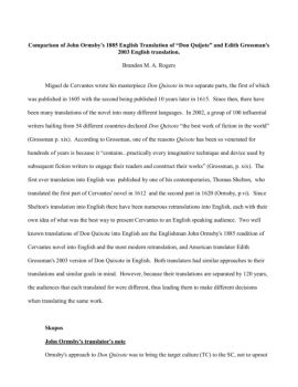 translations for various reasons. According to Ormsby, John Phillips' 1687 translation sought to translate Quixote “according to the humor of our modern language ...