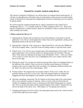 Seminars for Teachers SP 09 Sound Analysis Tutorial 1 Tutorial for Acoustic Analysis using Raven This tutorial is designed to familiarize you with the basics of ...