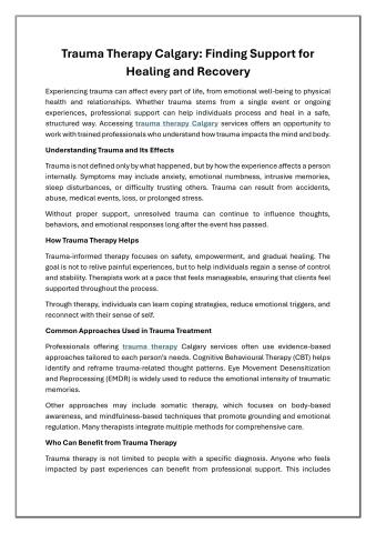 Accessing trauma therapy Calgary services offers an opportunity to work with trained professionals who understand how trauma impacts the mind and body.