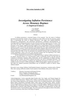 1 This version: September 6, 2002 Investigating Inflation Persistence Across Monetary Regimes I: Empirical Evidence Luca Benati* Bank of England Monetary Assessment ...