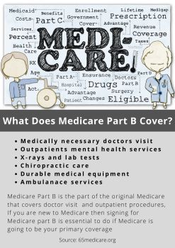 Medicare Part B covers outpatient services, including medically necessary services that you need to treat a disease or condition. It also covers preventive health care, such as screening, certain vaccines and mental health counseling. With Part B, you can not only perform annual check-ups and health checks, but it also benefits from services such as flu shots, which can protect you from diseases.