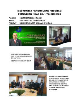 PROGRAM PEMULIHAN KHAS DAERAH BESUT 2020