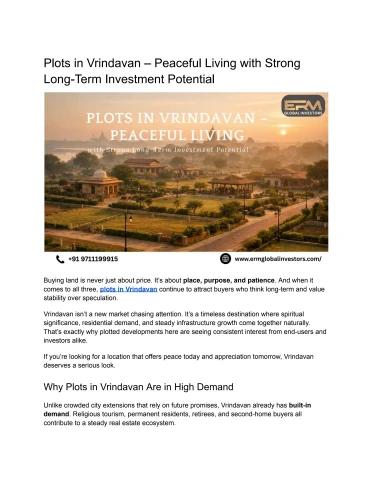 Buying land is never just about price. It’s about place, purpose, and patience. And when it comes to all three, plots in Vrindavan continue to attract buyers who think long-term and value stability over speculation.