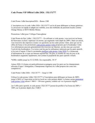 Utilisez le code promo 1XLUX777 lors de votre inscription et obtenez un bonus immédiat de 100% jusqu'à 130€. Offre valable dans tous les pays francophones d'Afrique (Sénégal, Côte d'Ivoire, Maroc, Algérie, Mali, Burundi, etc.).https://astra-hotel.ch/articles/code_promo_45.html