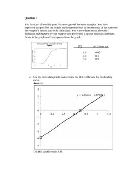 Free Ligand (nM) Fluorescence 5 4.766666667 7 4.955445545 10 5.107142857 15 5.231707317 20 5.296296296 Question 3 You have a wild-type receptor, in which the binding ...