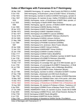 Index of Marriages with Forenames D to F Hemingway