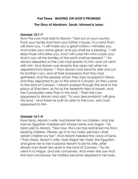 Part Three: WAITING ON GOD’S PROMISES The Story of Abraham ...