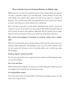 Easily convert your existing website to mobile app without any programming skill using the Freeweb2app online web to app converting tool.