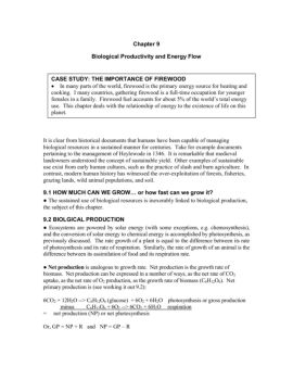 Chapter 9 Biological Productivity and Energy Flow It is clear from historical documents that humans have been capable of managing biological resources in a sustained ...