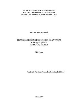 vilnius pedagogical university faculty of foreign languages department of english philology elena navickaitĖ translation inadequacies in antanas