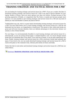 Save As PDF Ebook Training Strategic And Tactical Issues For A today. And You can Read Online Training Strategic And Tactical Issues For A PDF file for free from our ...
