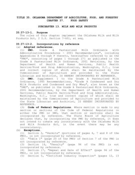 title 35. oklahoma department of agriculture, food, and forestry chapter 37. food safety subchapter 13. milk and milk products 35:37-13-1. purpose