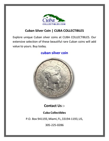 Explore unique Cuban silver coins at CUBA COLLECTIBLES. Our extensive selection of these beautiful rare Cuban coins will add value to yours. Buy today.