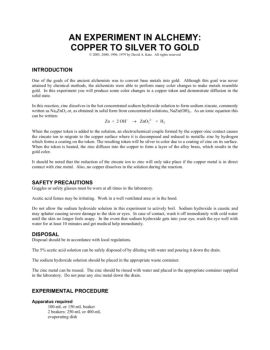 5 an experiment in alchemy: copper to silver to gold data and results name _____ course/section _____
