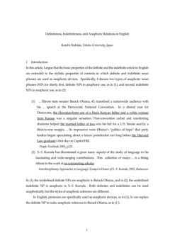 1 Definiteness, Indefiniteness, and Anaphoric Relations in English Koichi Nishida, Tohoku University, Japan 1 Introduction